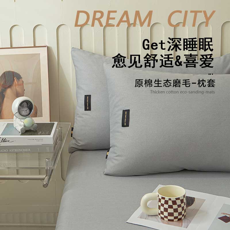2025新款原棉纯色织标磨毛单品及套件--枕套
