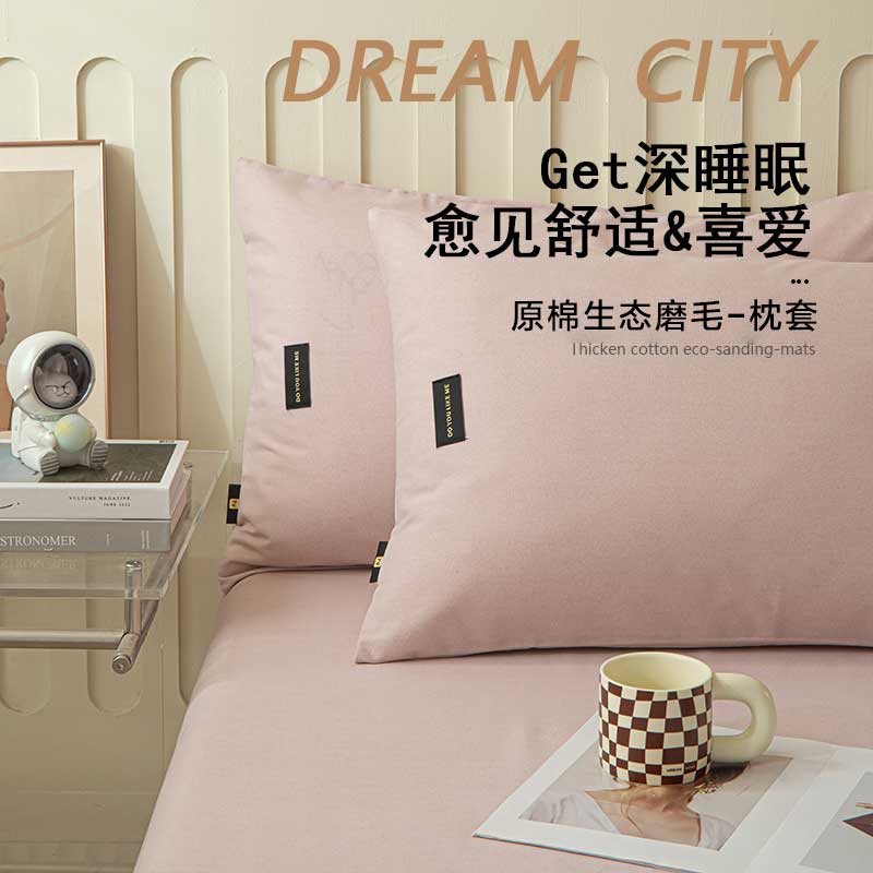 2025新款原棉纯色织标磨毛单品及套件--枕套