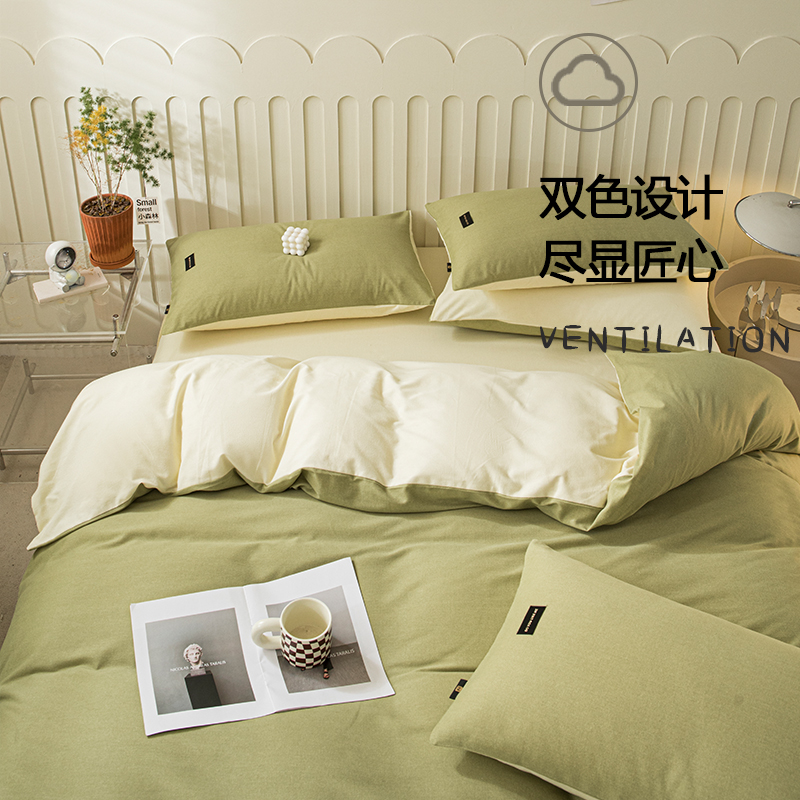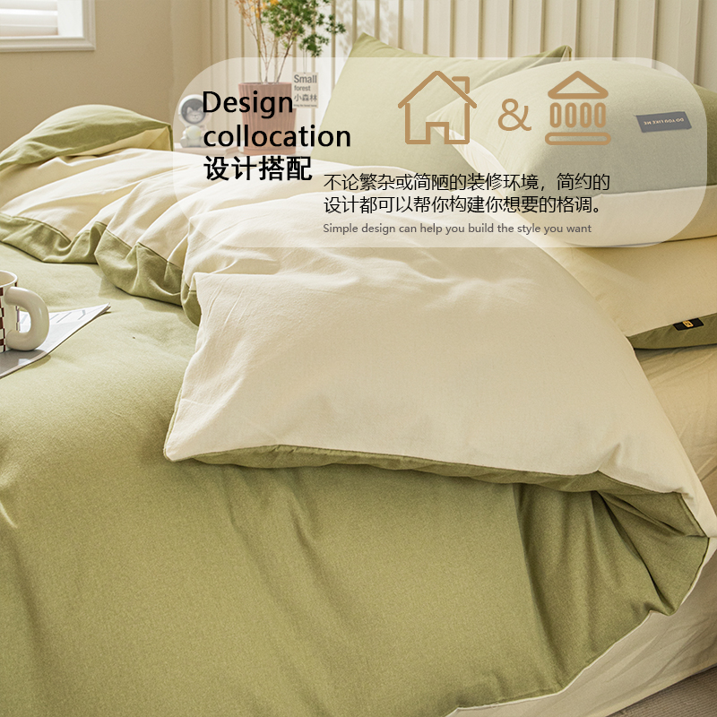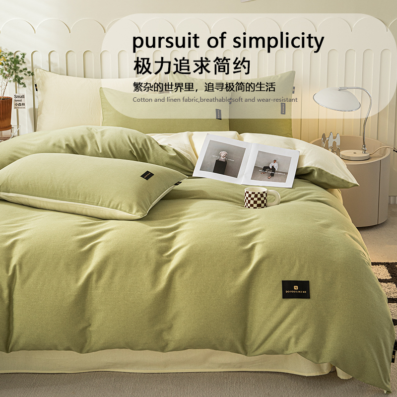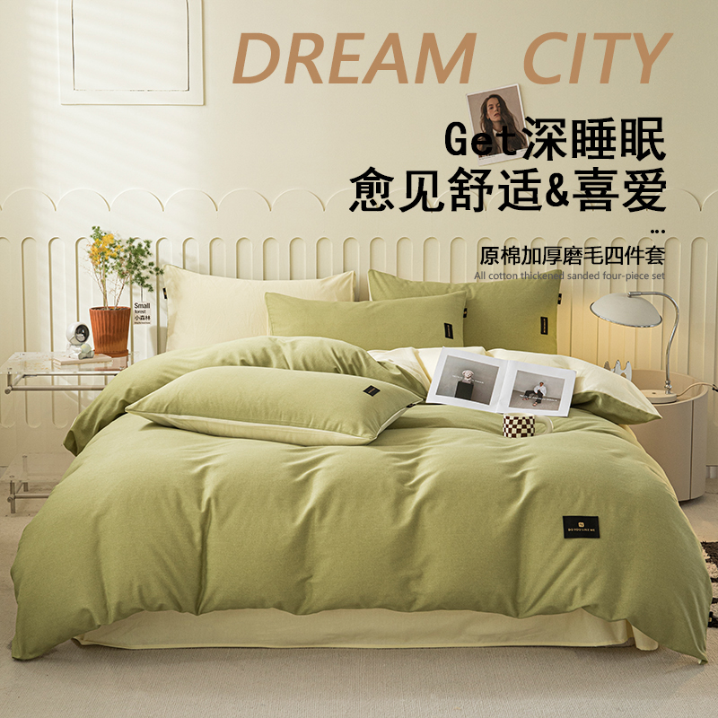 2025新款原棉纯色织标磨毛单品及套件--四件套