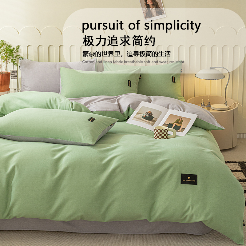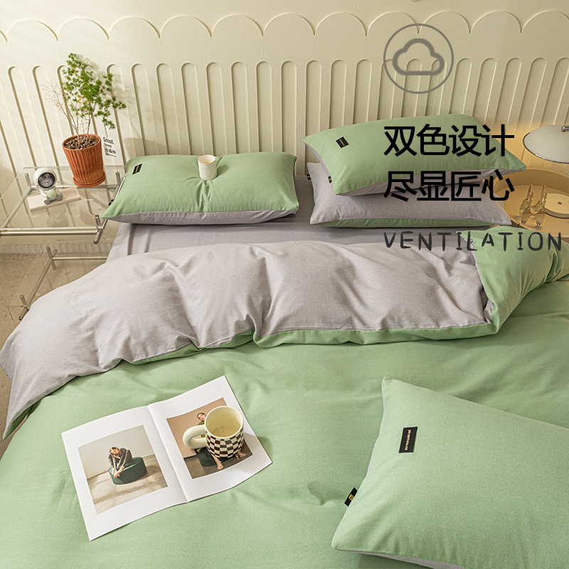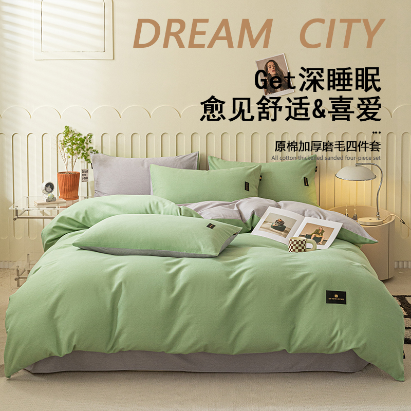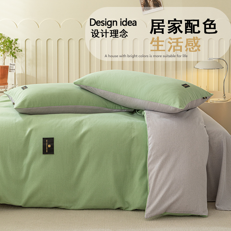 2025新款原棉纯色织标磨毛单品及套件--四件套