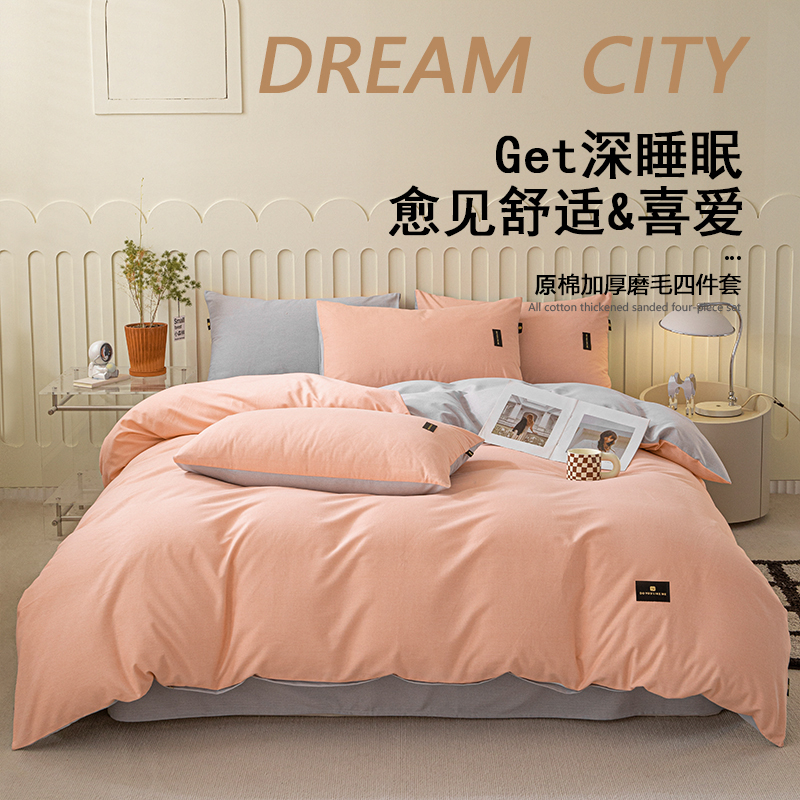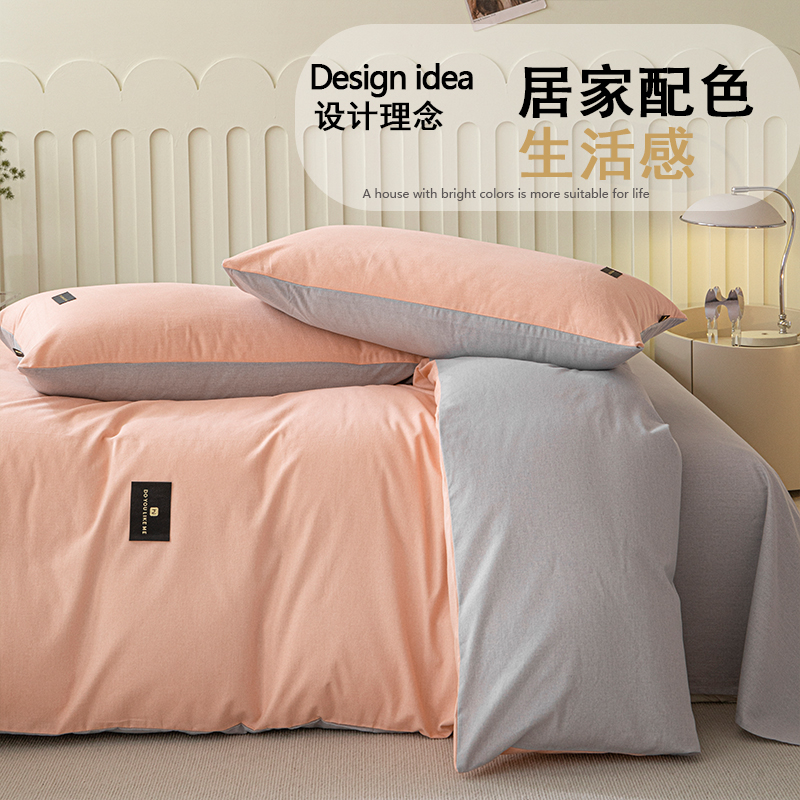 2025新款原棉纯色织标磨毛单品及套件--四件套