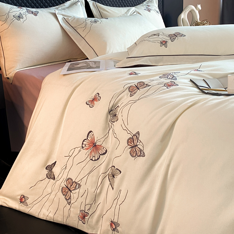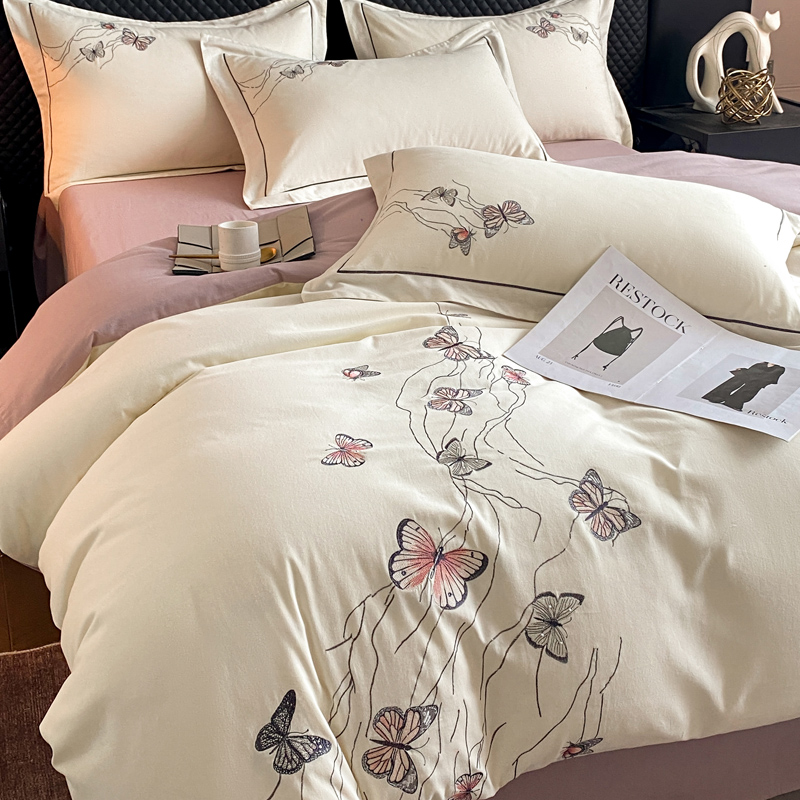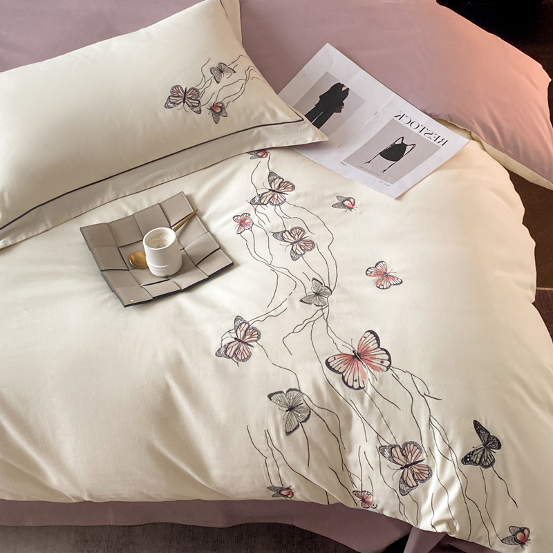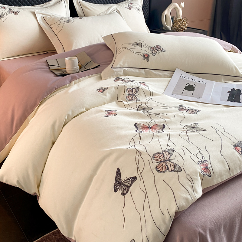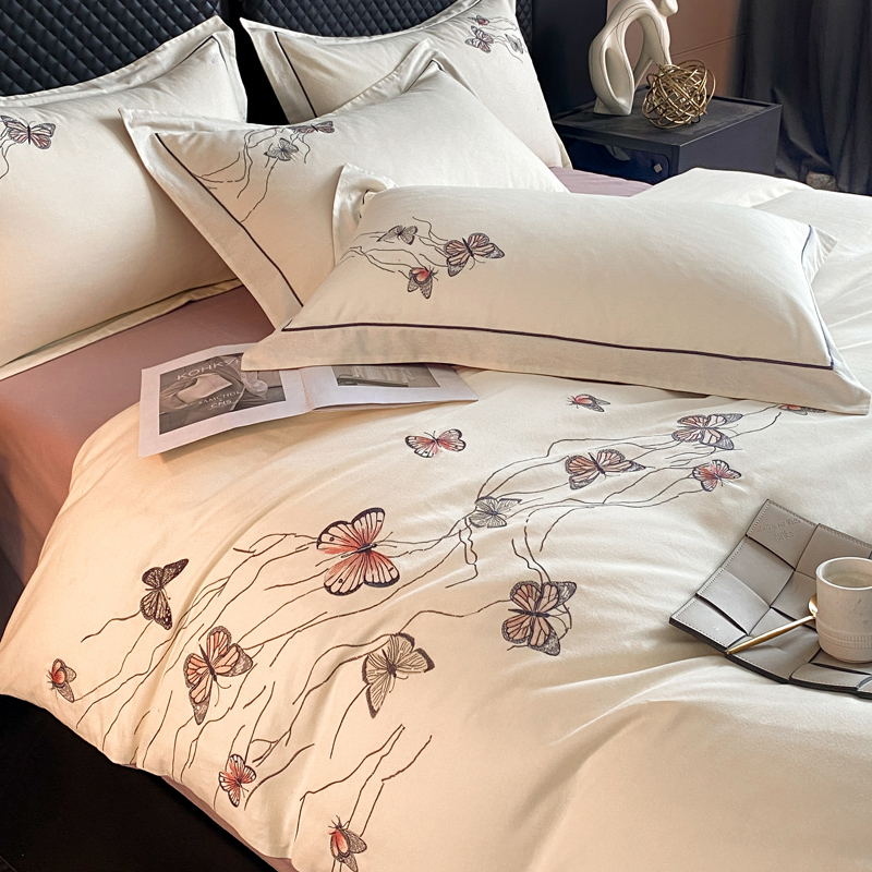 2024新款全棉磨毛刺绣四件套--蝶影系列