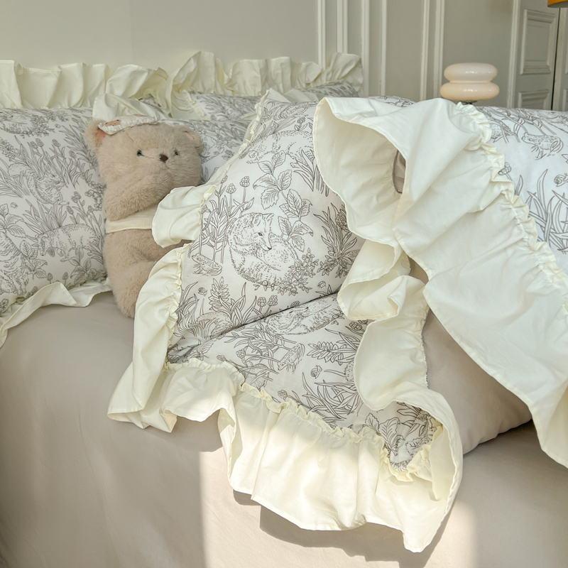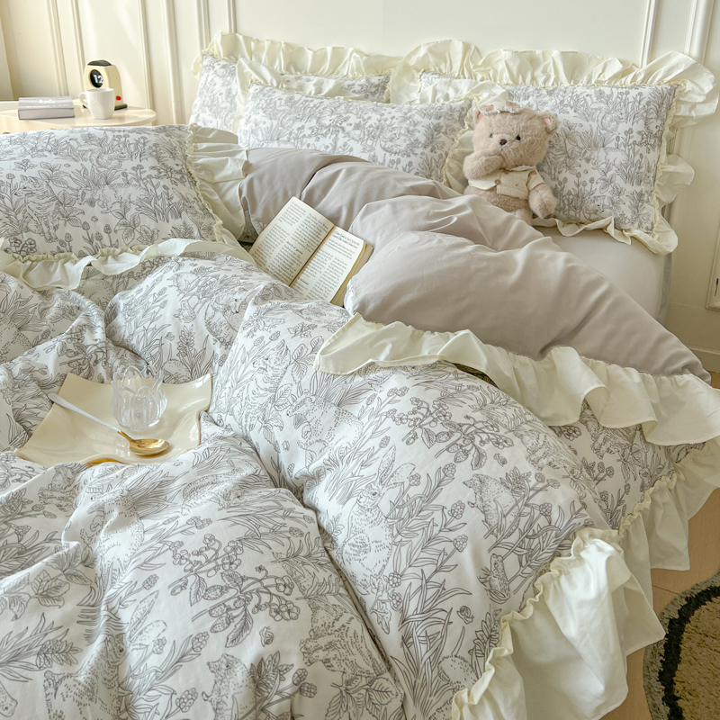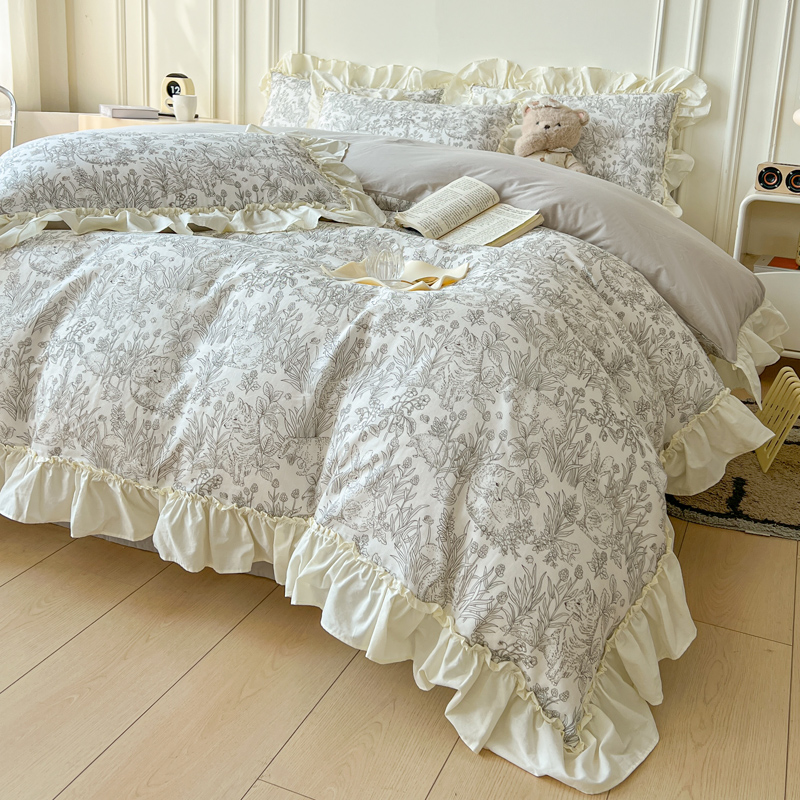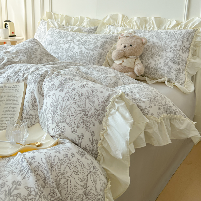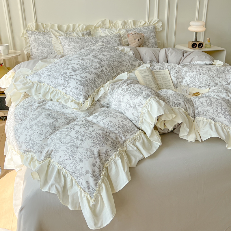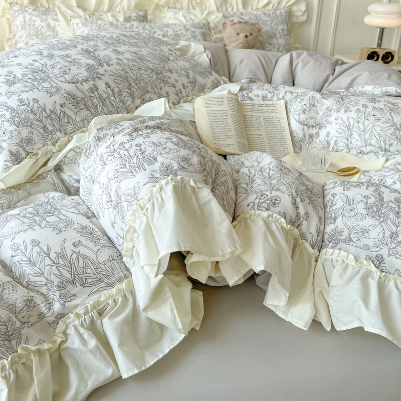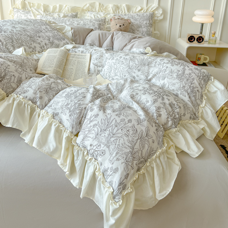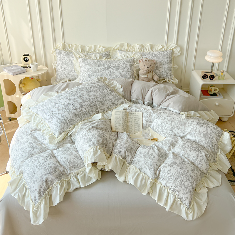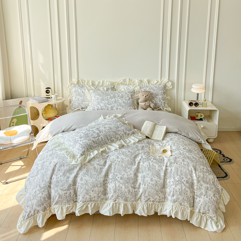 2025新款A类全棉双层纱荷叶花边四件套