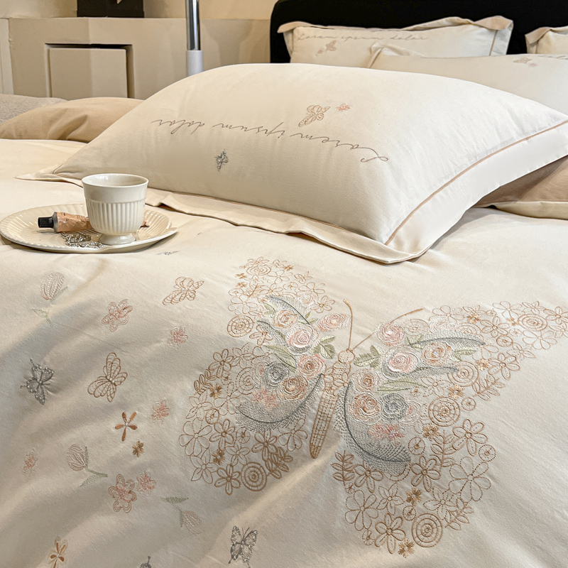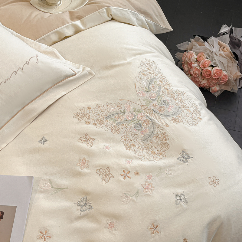 2025新款全棉磨毛刺绣四件套系列-花蝴蝶