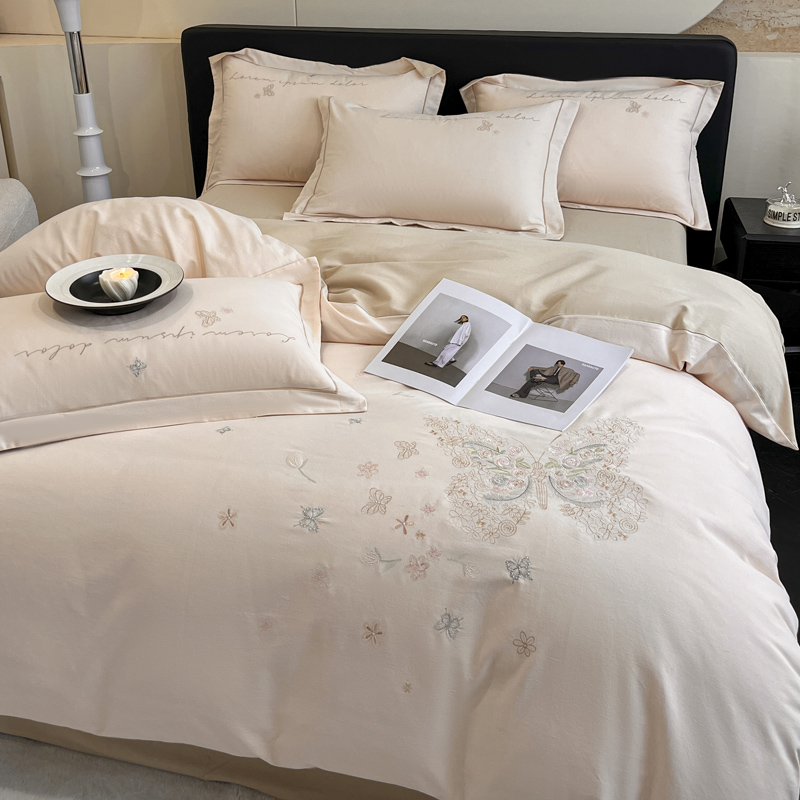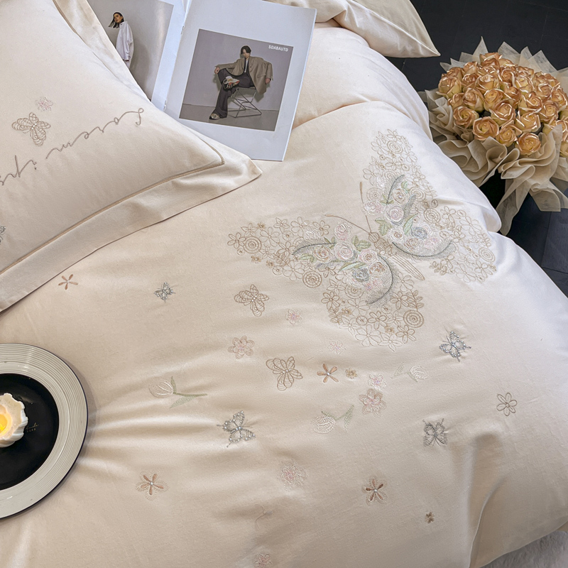 2025新款全棉磨毛刺绣四件套系列-花蝴蝶