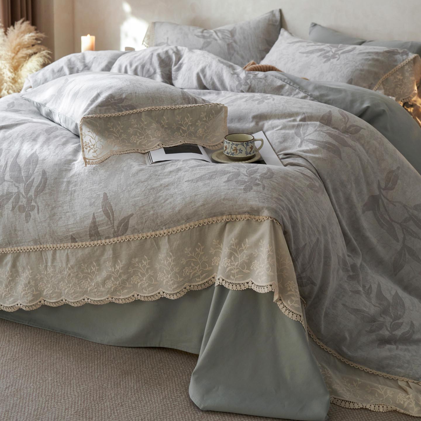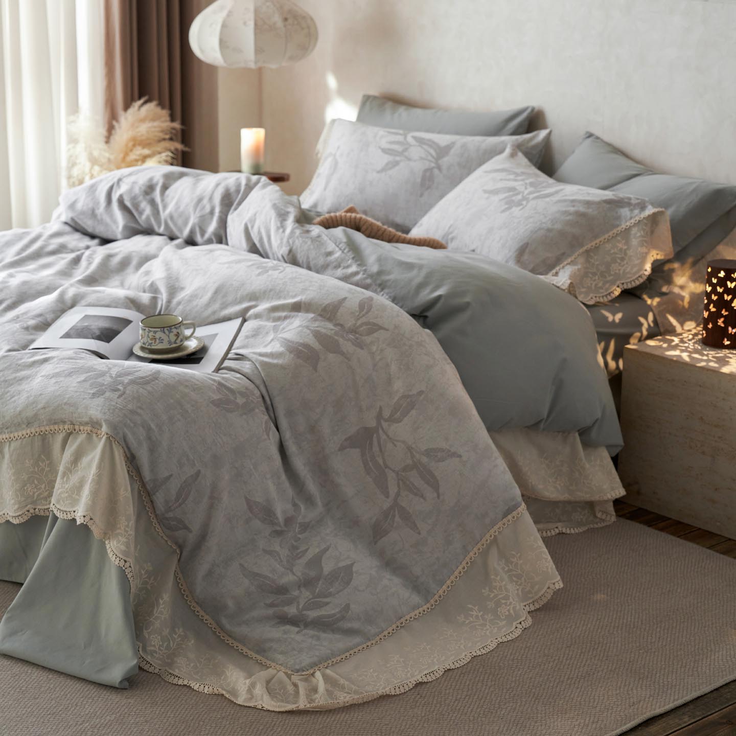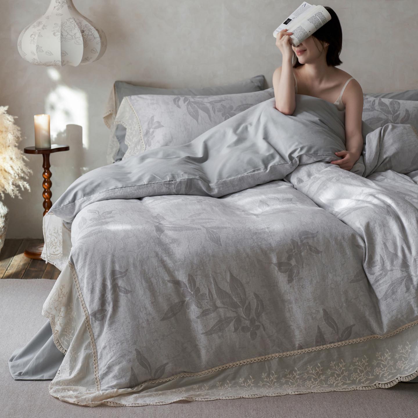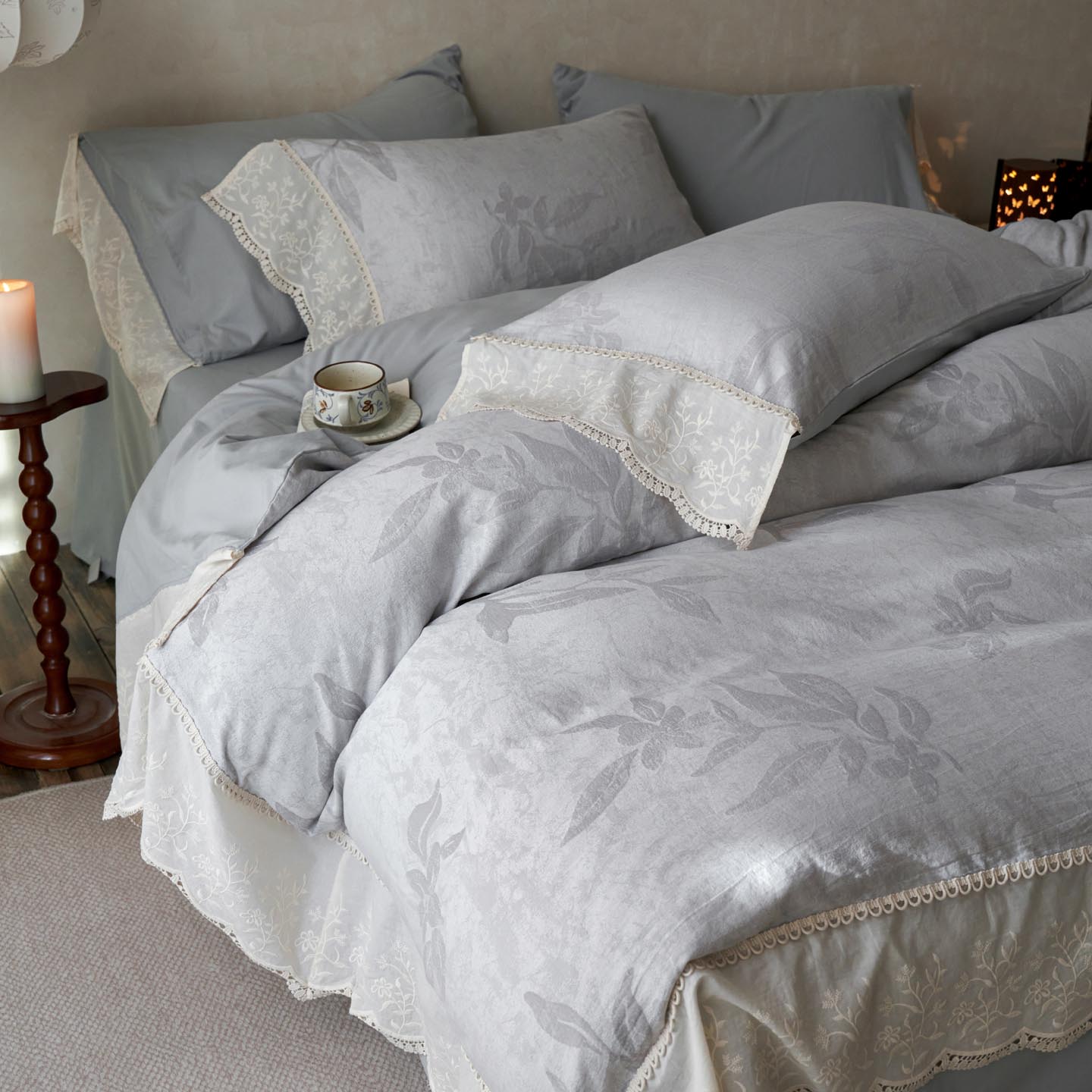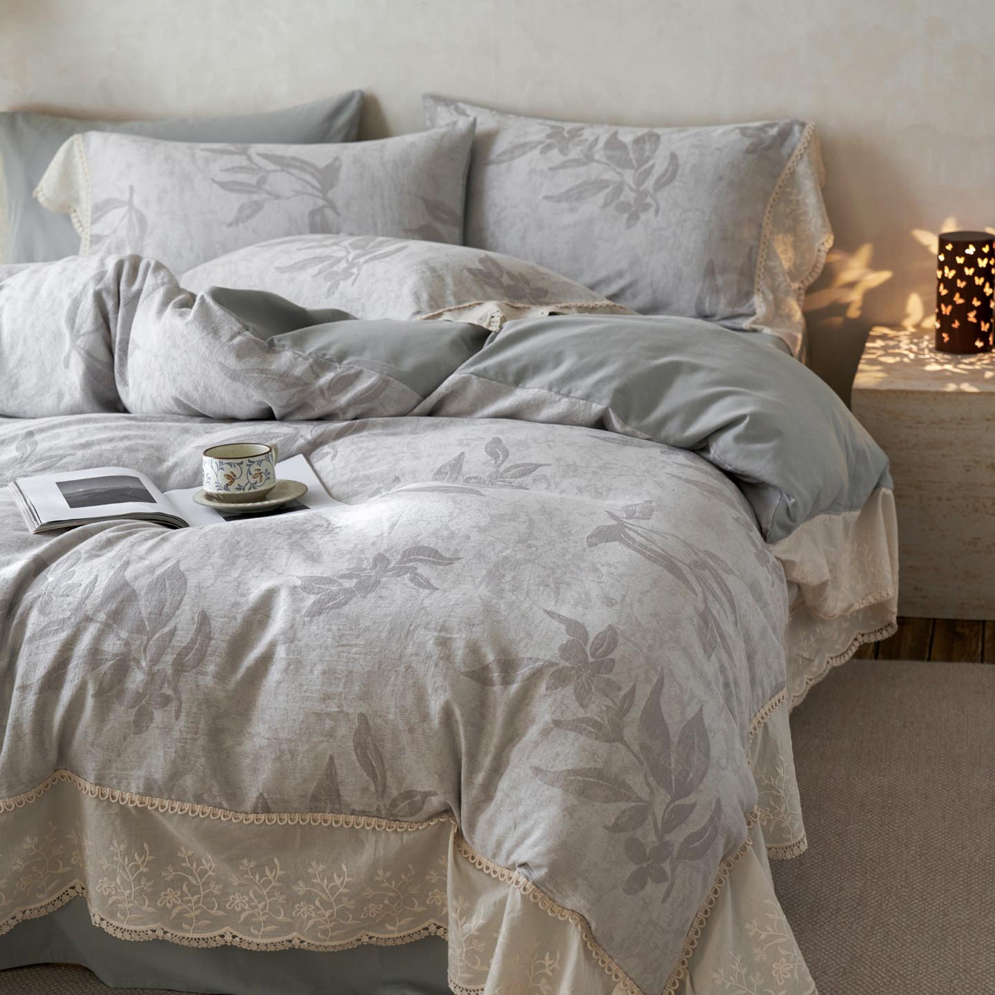 2025新款A类全棉磨毛色织提花花边四件套