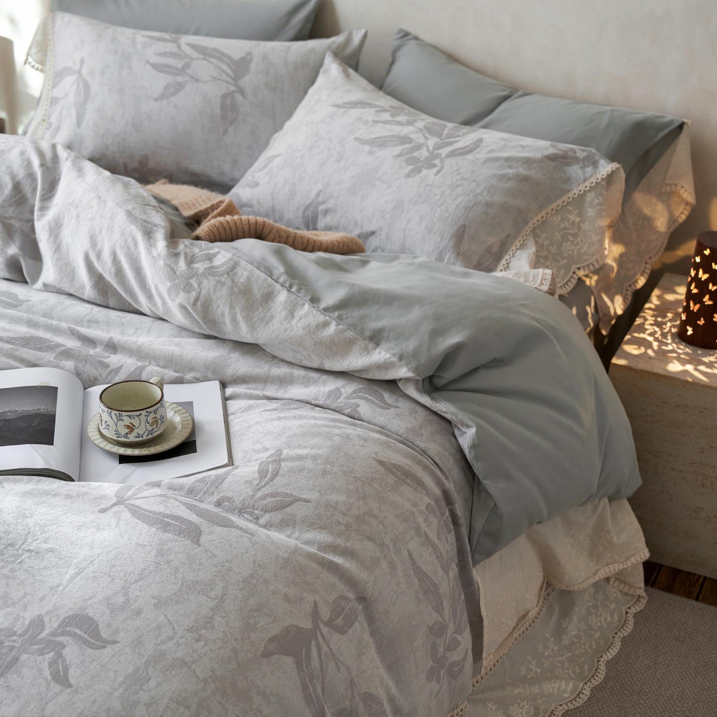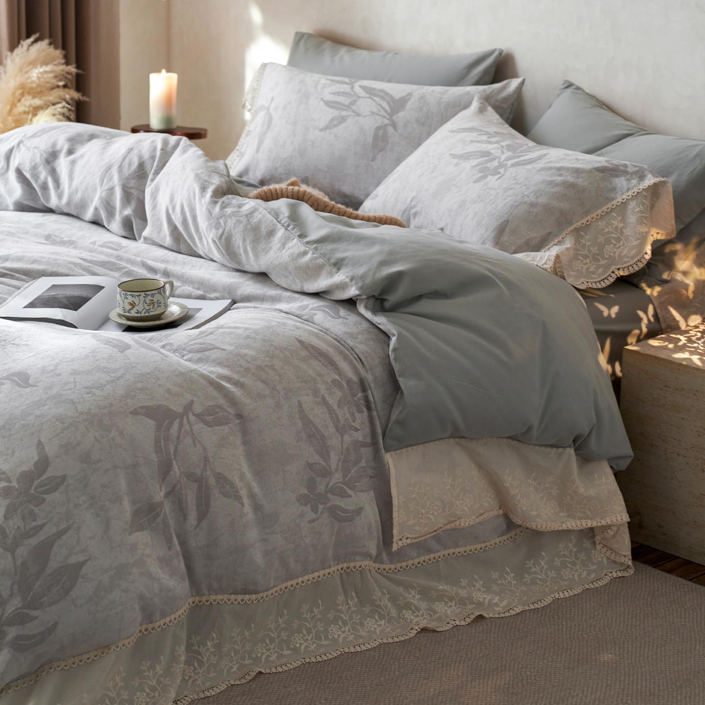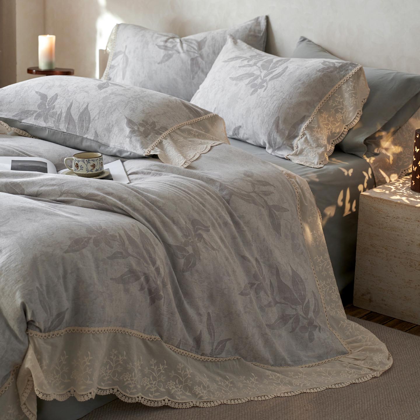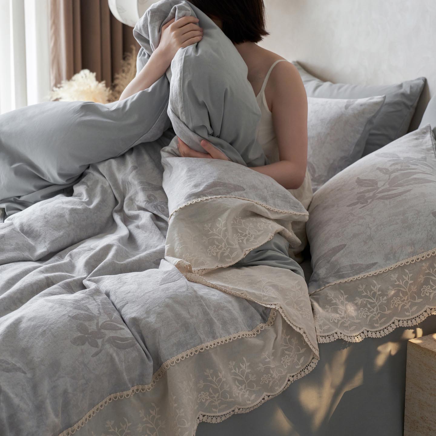 2025新款A类全棉磨毛色织提花花边四件套