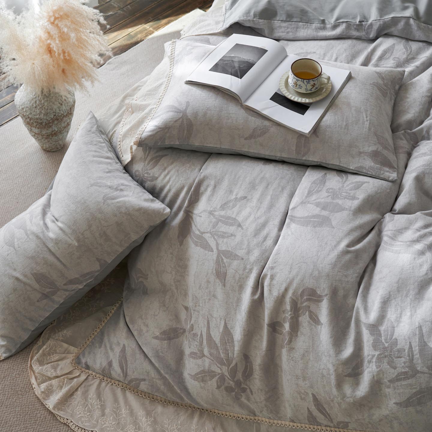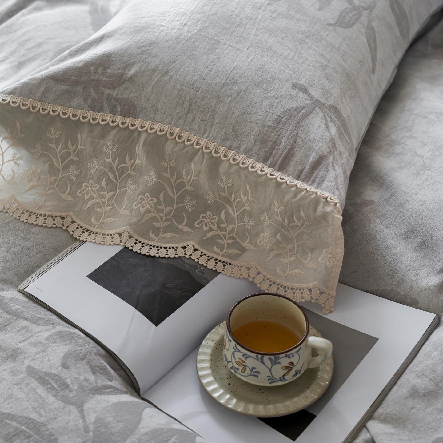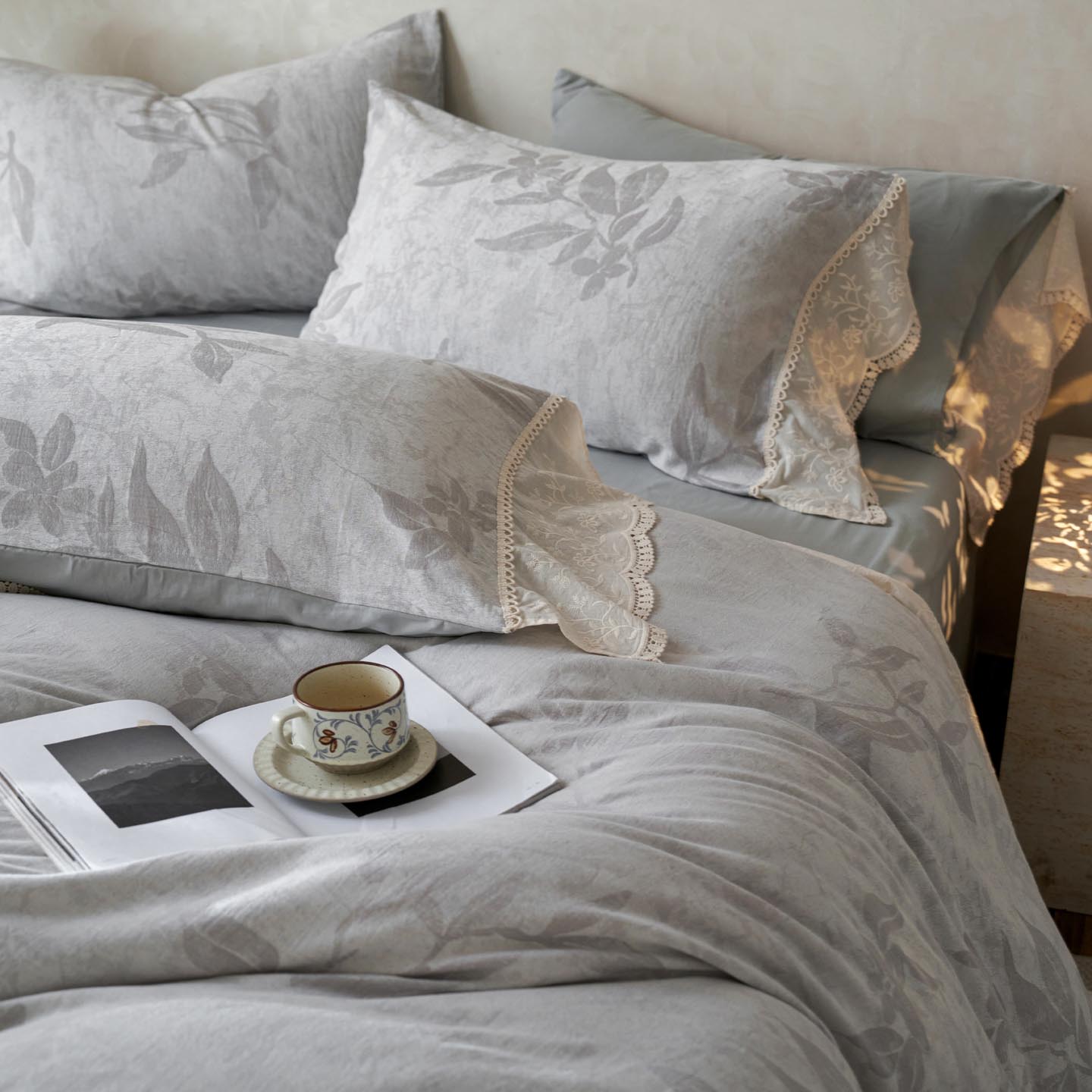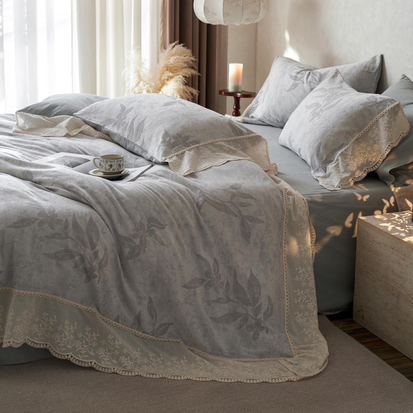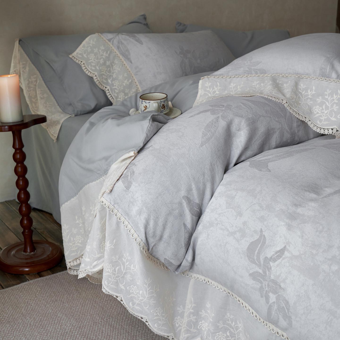 2025新款A类全棉磨毛色织提花花边四件套